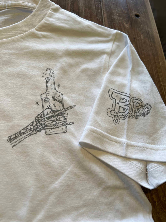 送料無料 BONDSRAMPCAFE オリジナル ロゴTシャツ BMX Tシャツ スケボー キッズTシャツ カフェ Tシャツ アウトドア Tシャツ ホワイト 全国通信販売可能 キッズサイズ Tシャツ ■