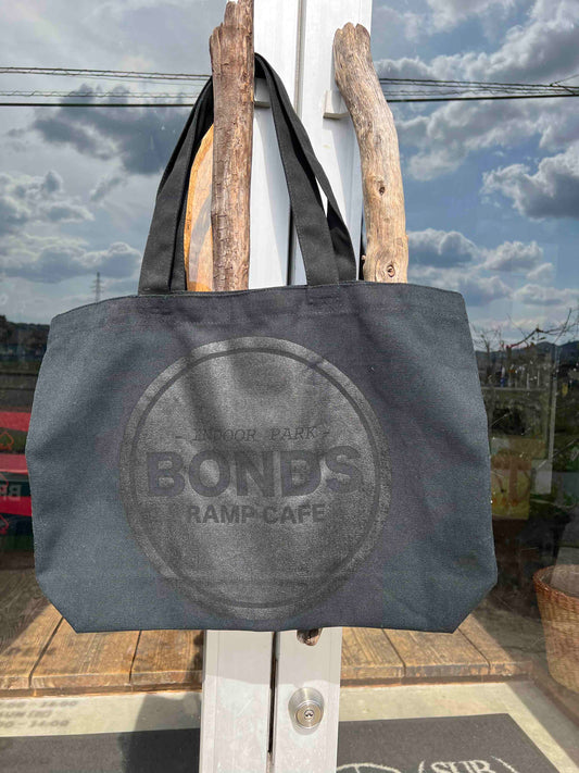 送料無料 BONDSRAMPCAFE オリジナル トートバッグ BLACK 黒 ロゴ入り 通勤通学 カバン 大きめ BMX スケートボード ■