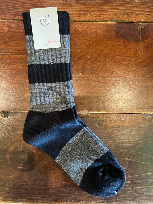 ★送料無料 スケートボード CHING&CO. チンアンドコー スケボー 靴下 フリー 24.5~27.5㎝ スケーター ソックス グレー×ネイビー アパレル 全国通販可能 ◎